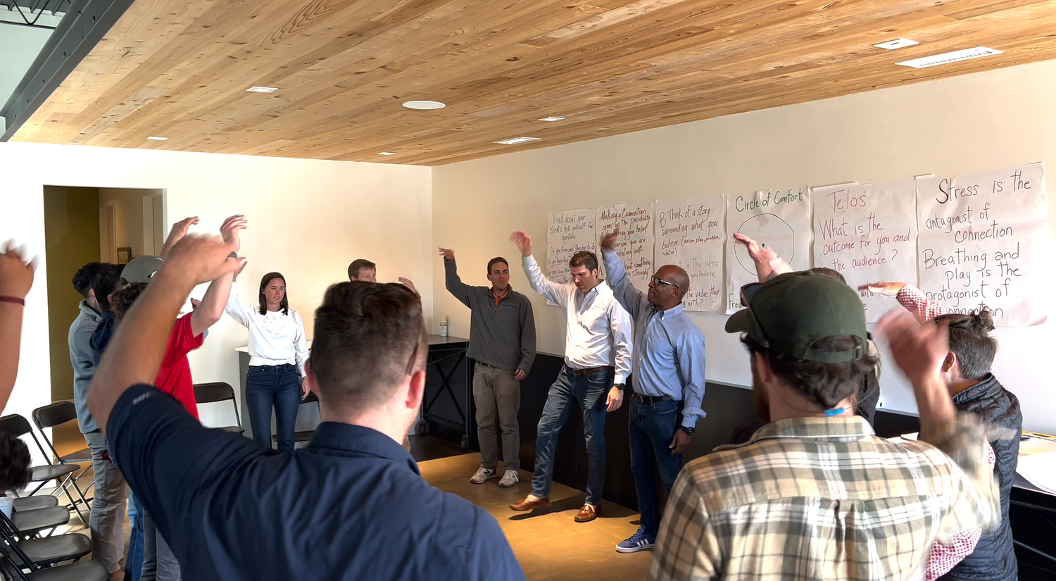 Leaders learn theatre techniques to help them connect to their authentic self to help make memorable impressions on the audience.